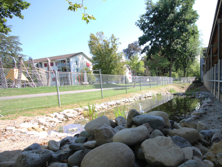 Das Biotop trägt zur Förderung der Biodiversität in unseren Siedlungen bei. Es wurden bereits erste Libellen beobachtet. In den nächsten Jahren werden sich weitere Insekten und Amphibien ansiedeln.
